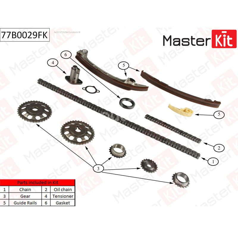 Технические характеристики товара «Комплект цепи ГРМ MasterKit TOYOTA Avensis 2.0i/2.4i 16V 1AZFE/2AZFE 01 77B0029FK»