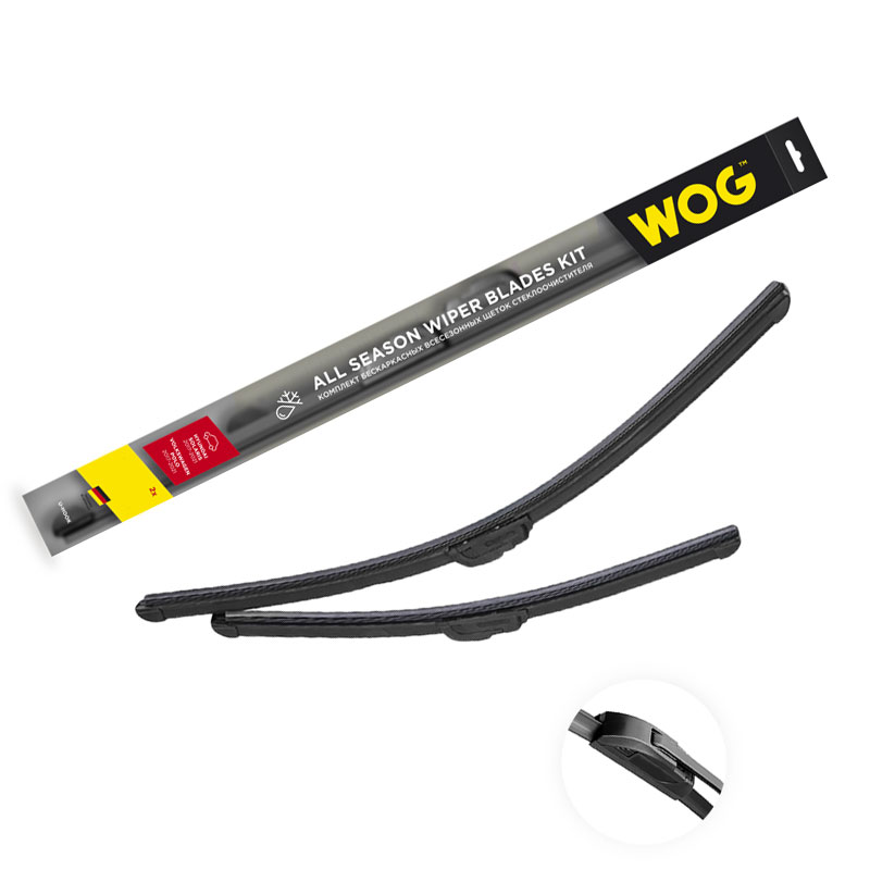 Главная / Каталог автомобильных товаров / Автозапчасти / Щетки стеклоочистителя / Комплект бескаркасных щеток WOG 24"/600+20"/500 мм всесезонная 2 шт WGC1416