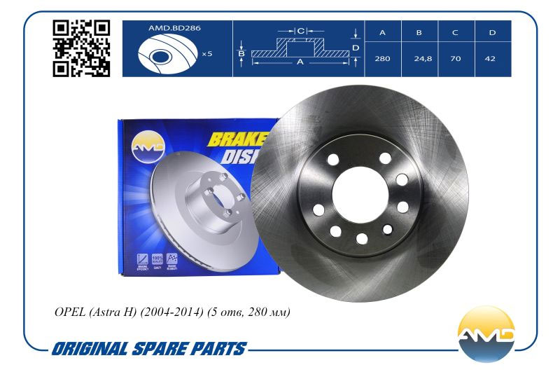 Технические характеристики товара «Диск тормозной передний AMD AMDBD286»