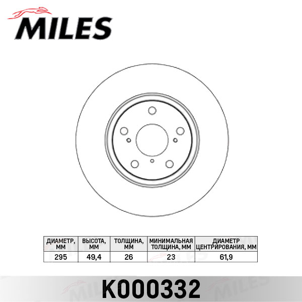 Технические характеристики товара «Диск тормозной передний MILES K000332 (TRW DF4939S)»