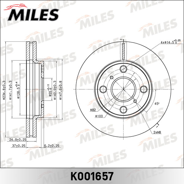 Технические характеристики товара «Диск тормозной передний MILES K001657 (TRW DF7319)»