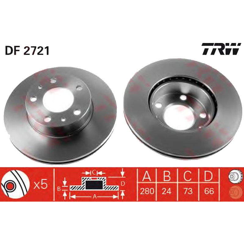 Технические характеристики товара «Диск тормозной передний TRW DF2721»