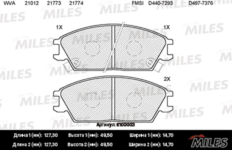 Технические характеристики товара «Тормозные колодки передние MILES E100003»