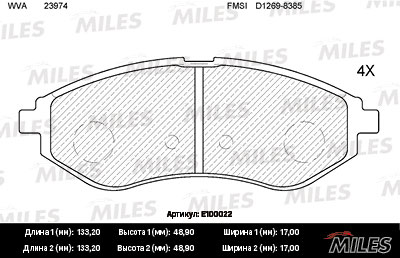 Технические характеристики товара «Тормозные колодки передние MILES E100022»