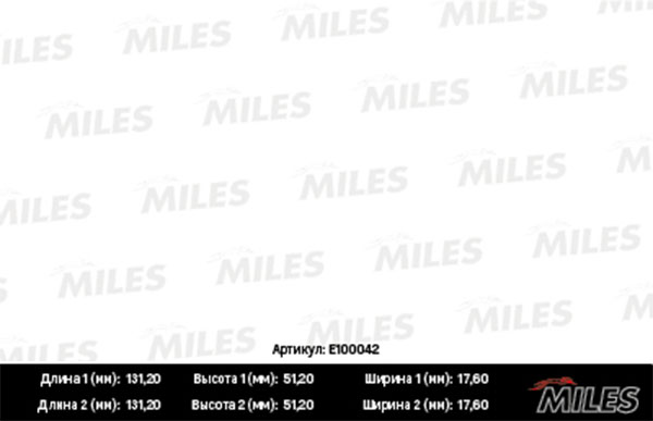 Технические характеристики товара «Тормозные колодки передние MILES E100042»