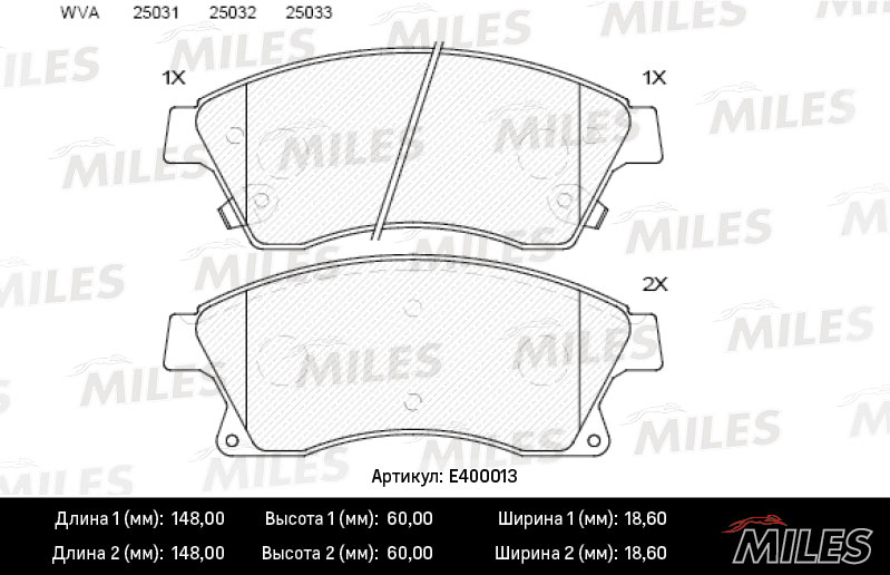 Технические характеристики товара «Тормозные колодки передние MILES E400013»
