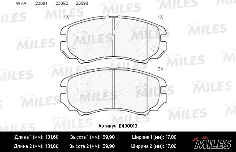 Технические характеристики товара «Тормозные колодки передние MILES E400019»