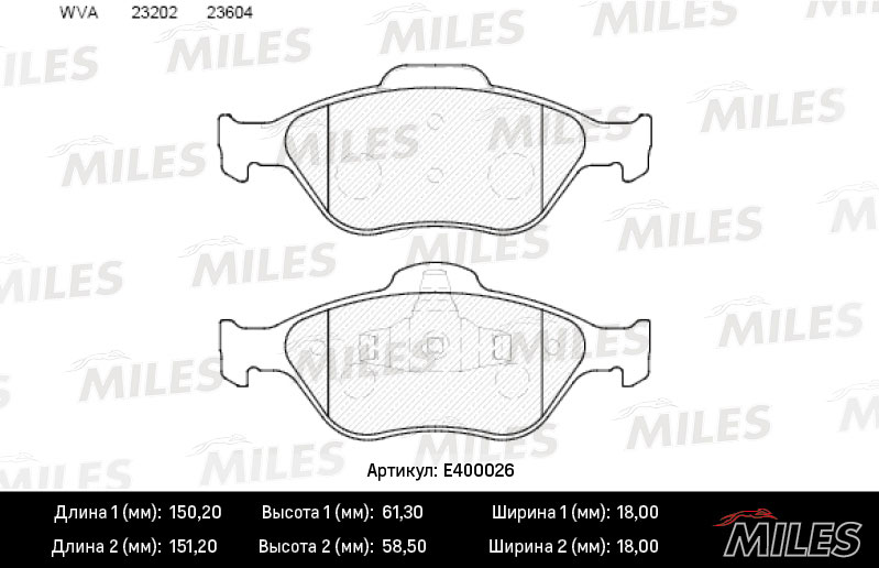 Технические характеристики товара «Тормозные колодки передние MILES E400026»