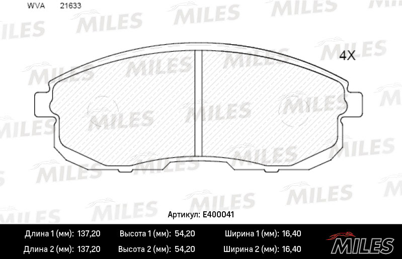 Технические характеристики товара «Тормозные колодки передние MILES E400041»