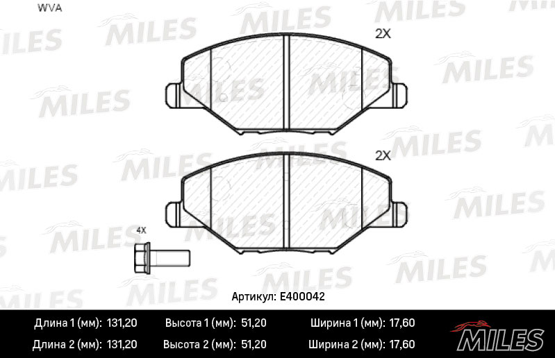 Технические характеристики товара «Тормозные колодки передние MILES E400042»