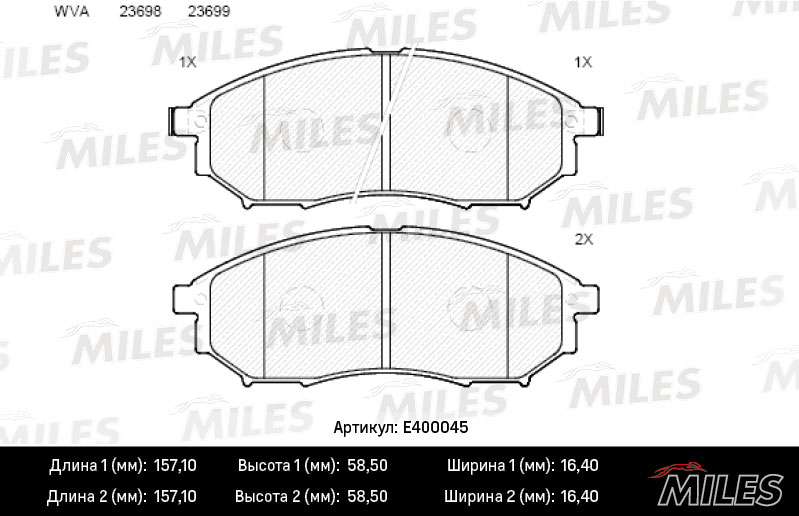 Технические характеристики товара «Тормозные колодки передние MILES E400045»