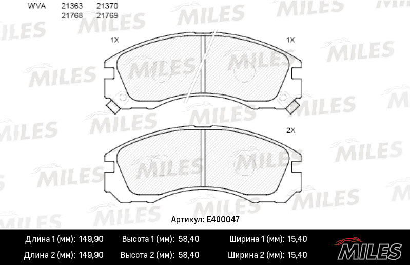 Технические характеристики товара «Тормозные колодки передние MILES E400047»