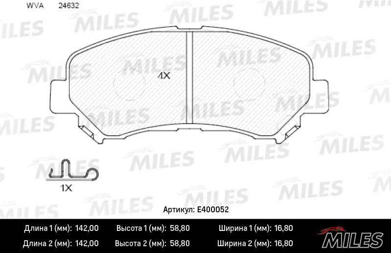 Технические характеристики товара «Тормозные колодки передние MILES E400052»