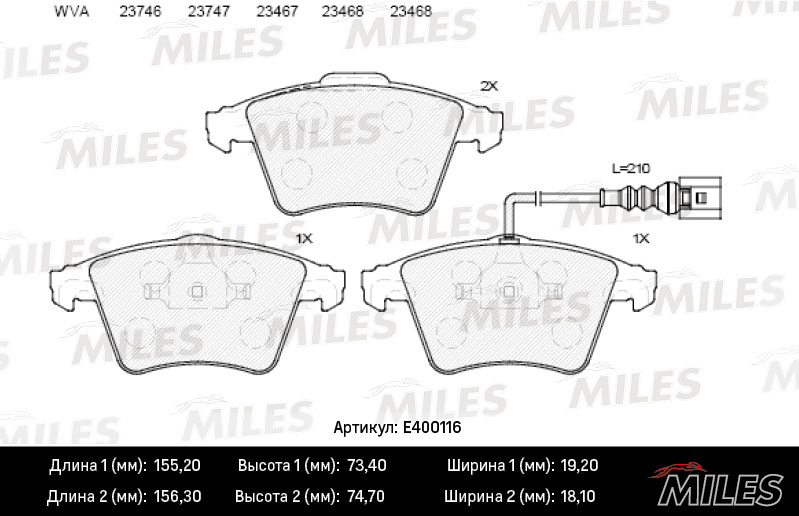 Технические характеристики товара «Тормозные колодки передние MILES E400116»