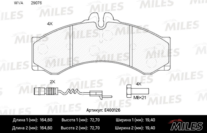 Технические характеристики товара «Тормозные колодки передние MILES E400126»