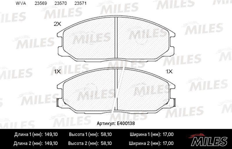Технические характеристики товара «Тормозные колодки передние MILES E400138»