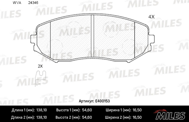 Технические характеристики товара «Тормозные колодки передние MILES E400153»