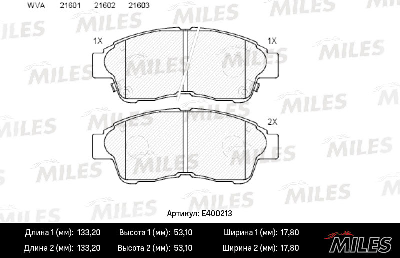 Технические характеристики товара «Тормозные колодки передние MILES E400213»