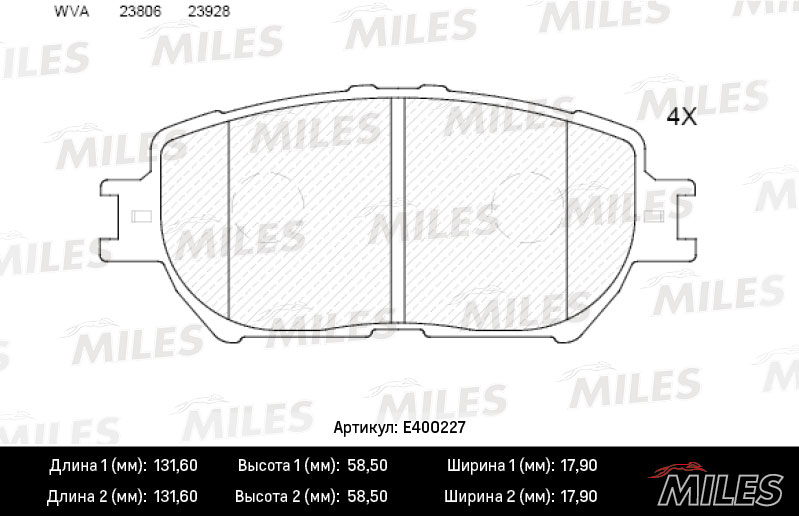 Технические характеристики товара «Тормозные колодки передние MILES E400227»