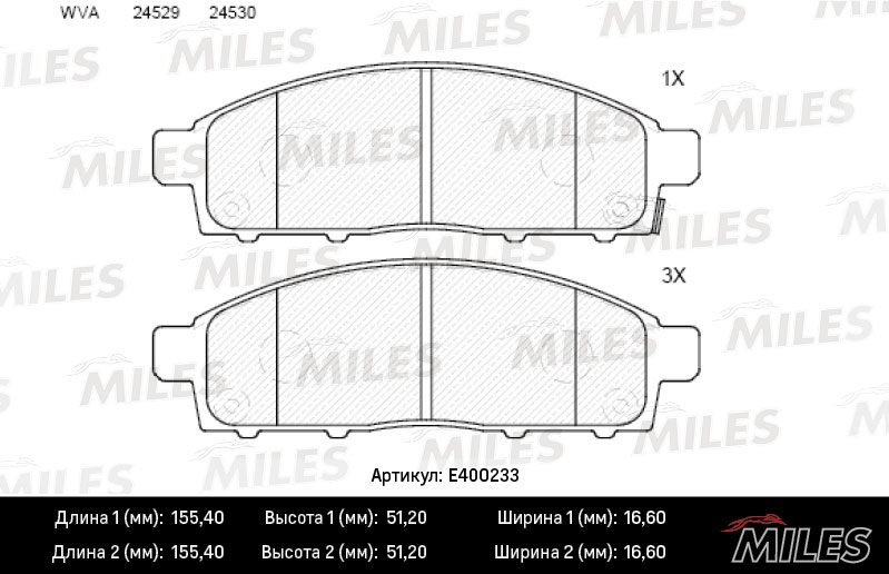 Технические характеристики товара «Тормозные колодки передние MILES E400233»