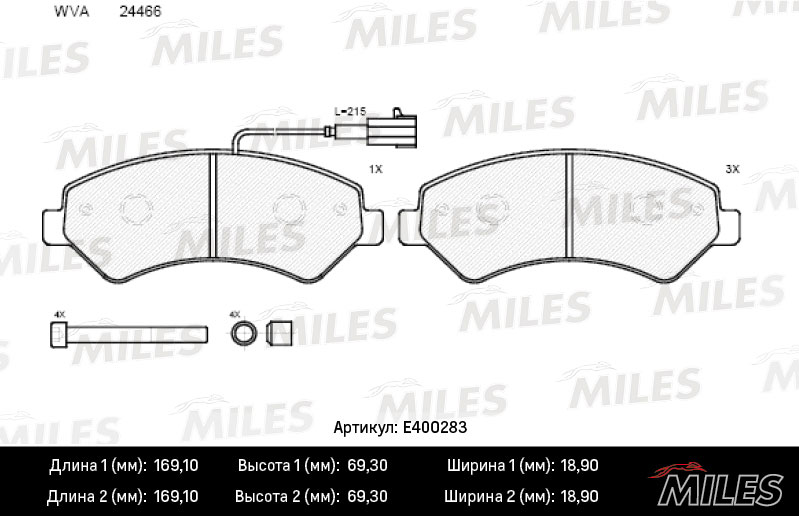 Технические характеристики товара «Тормозные колодки передние MILES E400283»