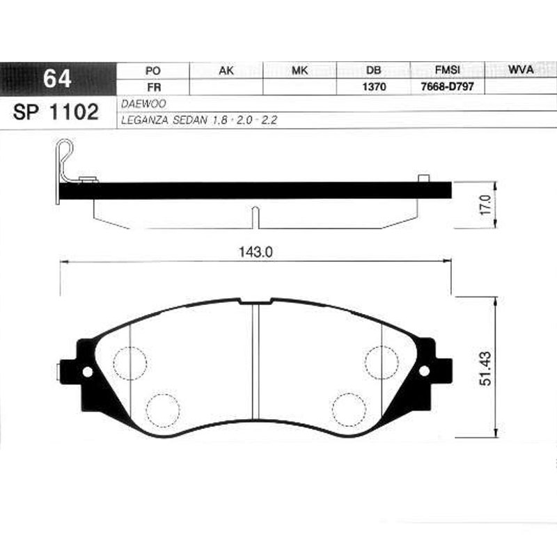 Технические характеристики товара «Тормозные колодки SANGSIN дисковые SP1102»