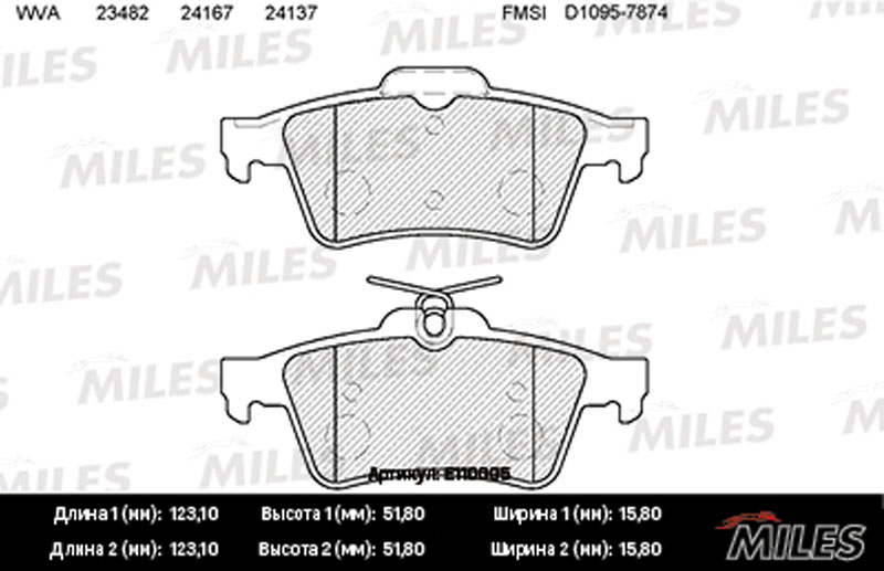 По Свердловской Области доставка Тормозные колодки задние MILES E110005 в города: Нижний Тагил, Каменск-Уральский, Первоуральск, Серов, Новоуральск, Асбест, Полевской, Верхняя Пышма, Ревда, Краснотурьинск, Берёзовский, Лесной, Верхняя Салда, Качканар, Красноуфимск, Алапаевск, Ирбит, Реж, Тавда, Сухой Лог, Артёмовский, Богданович.