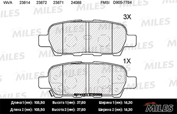 Технические характеристики товара «Тормозные колодки задние MILES E110008»