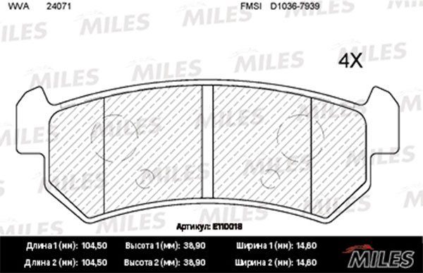 Технические характеристики товара «Тормозные колодки задние MILES E110018»