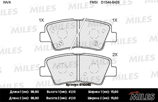 Технические характеристики товара «Тормозные колодки задние MILES E110062»