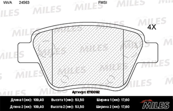 Технические характеристики товара «Тормозные колодки задние MILES E110092»