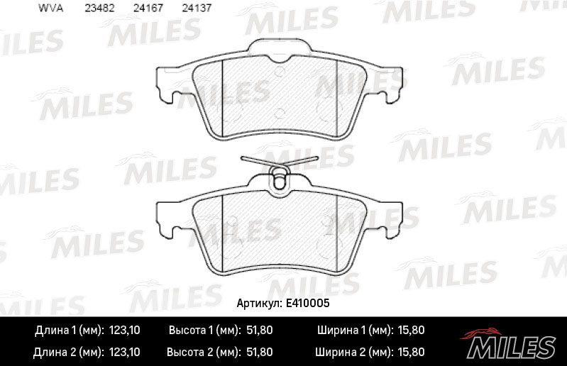 Технические характеристики товара «Тормозные колодки задние MILES E410005»