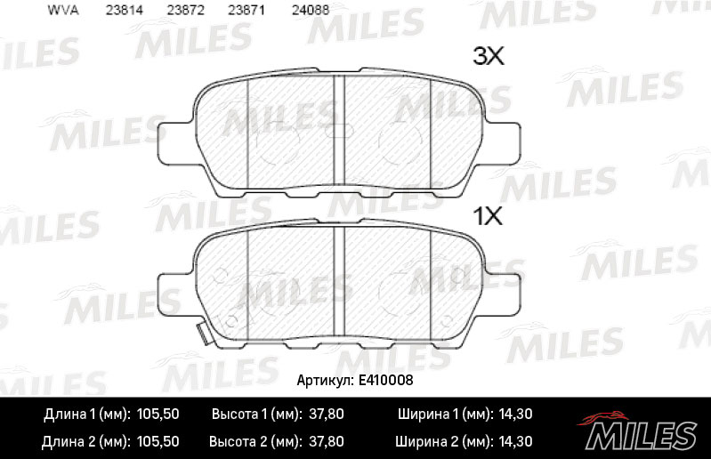 Технические характеристики товара «Тормозные колодки задние MILES E410008»