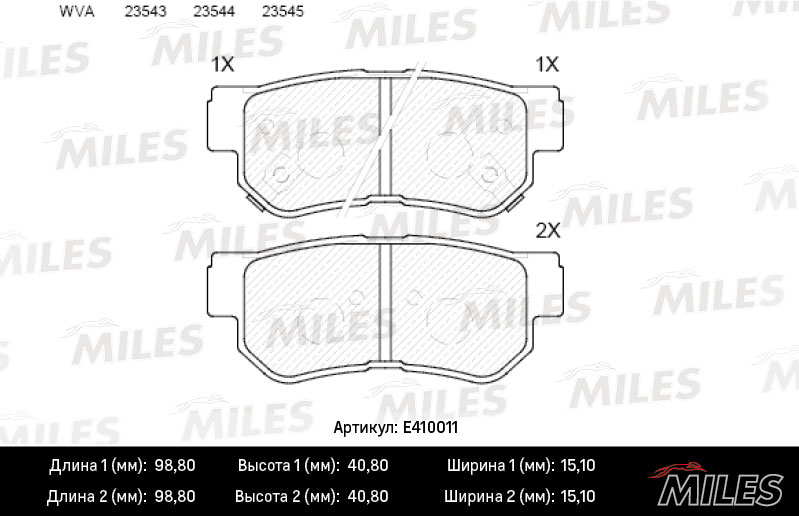 Технические характеристики товара «Тормозные колодки задние MILES E410011»