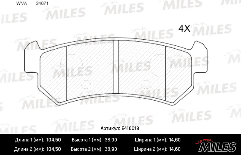 Технические характеристики товара «Тормозные колодки задние MILES E410018»
