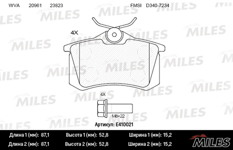 Технические характеристики товара «Тормозные колодки задние MILES E410021»