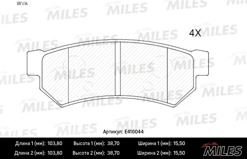 Технические характеристики товара «Тормозные колодки задние MILES E410044»