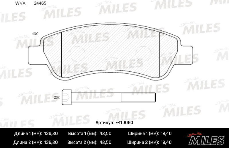 Технические характеристики товара «Тормозные колодки задние MILES E410090»
