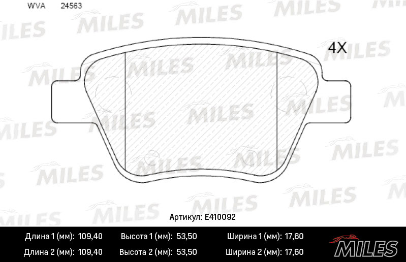 Технические характеристики товара «Тормозные колодки задние MILES E410092»