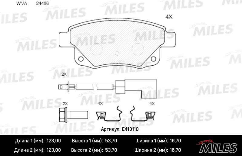 Технические характеристики товара «Тормозные колодки задние MILES E410110»
