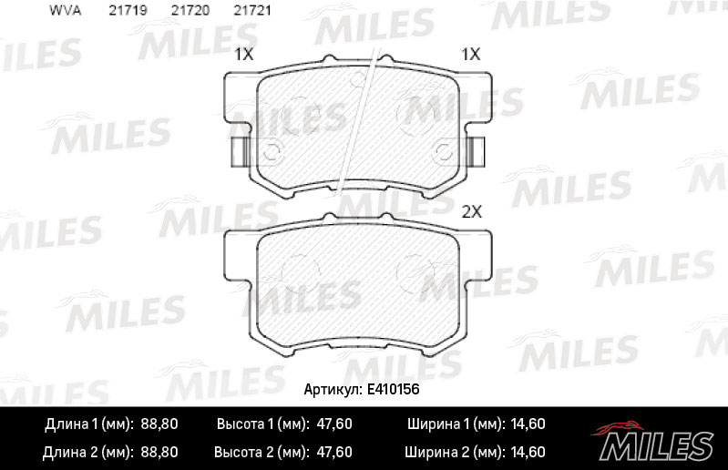 Технические характеристики товара «Тормозные колодки задние MILES E410156»