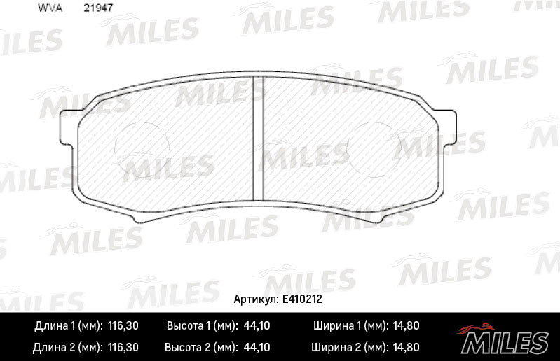 Технические характеристики товара «Тормозные колодки задние MILES E410212»