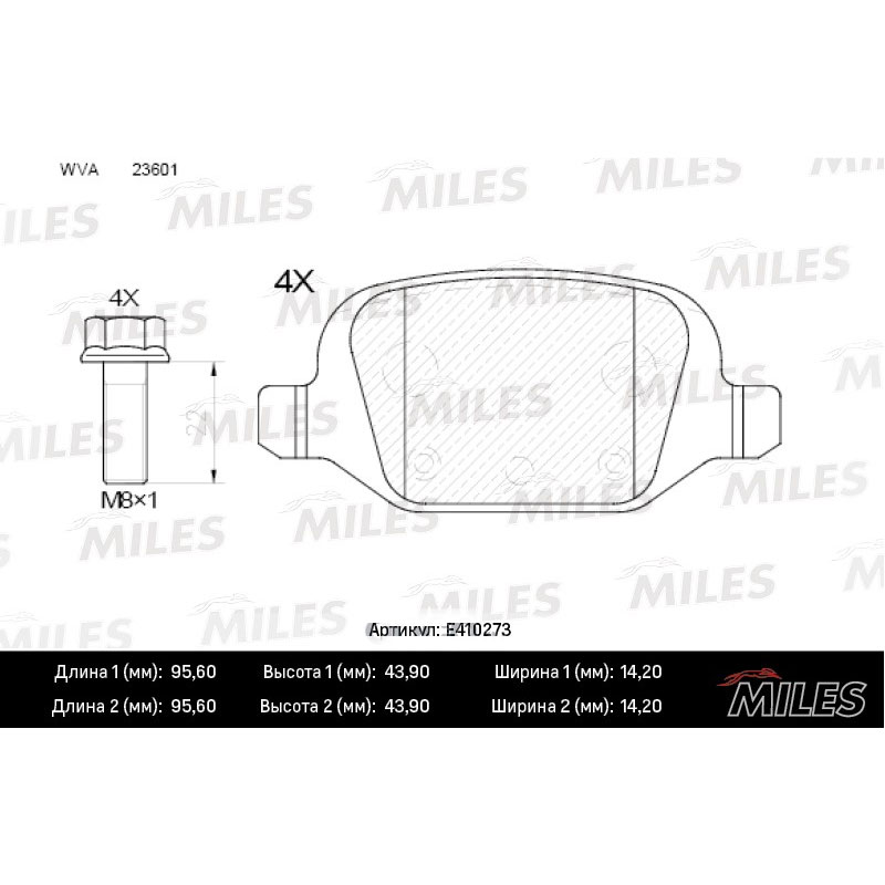 Технические характеристики товара «Тормозные колодки задние MILES E410273»