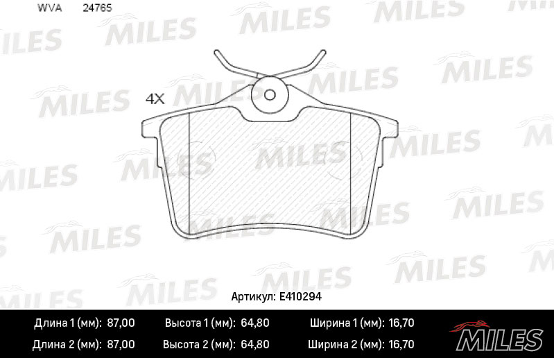 Технические характеристики товара «Тормозные колодки задние MILES E410294»