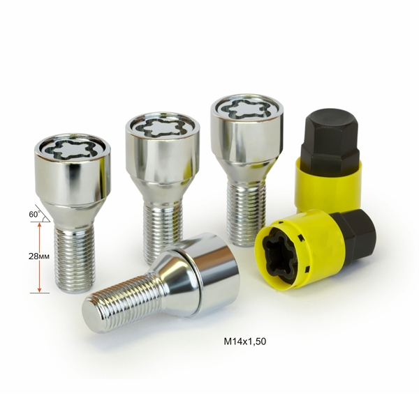 Технические характеристики товара «Секретный болт Save Car (SL) 14x1,5x28x54 CH17/19 конус, тройной никель-хром,вращ.кольцо (арт. C (SL))»