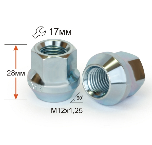 Главная / Каталог автомобильных товаров / Колесный крепеж / Гайки / Гайка M12x1,25 Открытая Код 1806-ВХ4 (4шт./уп.)
