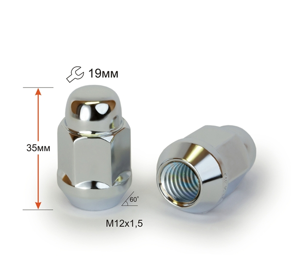 Главная / Каталог автомобильных товаров / Колесный крепеж / Гайки / Гайка закрытая "FM" 12x1.5 CH19 L35 JN-105 блистер (4шт./уп.)