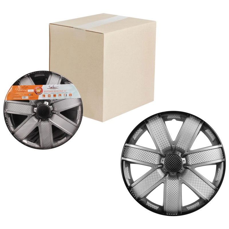Главная / Каталог автомобильных товаров / Комплектующие для дисков / Колпаки и вставки / Колпаки 14" декоративные Гелакси Плюс серебристо-черные карбон 2 шт. Airline AWCC-14-20