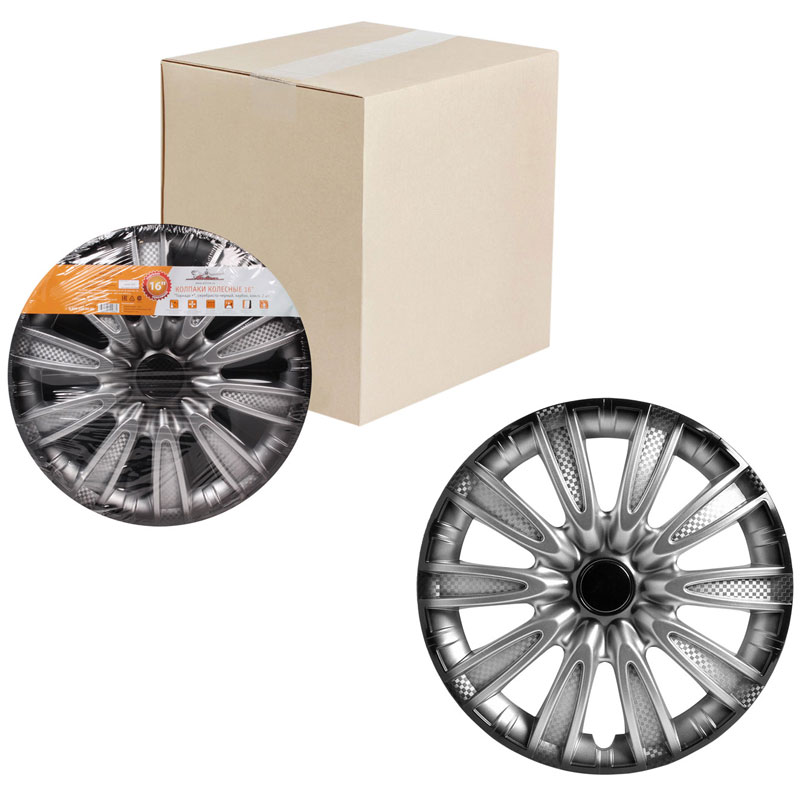 Главная / Каталог автомобильных товаров / Комплектующие для дисков / Колпаки и вставки / Колпаки 16" декоративные Торнадо Плюс серебристо-черные 2 шт. Airline AWCC-16-30