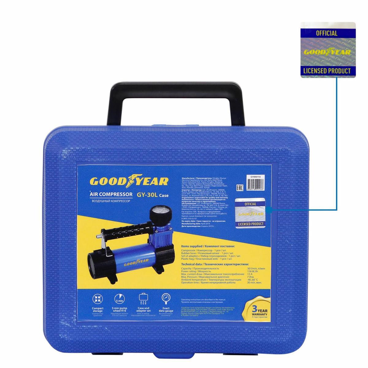 На кейсе можно найти голограмму с уникальным номером. Только компрессоры с этим знаком является оригинальным лицензионным продуктом Goodyear с гарантированно высоким качеством.